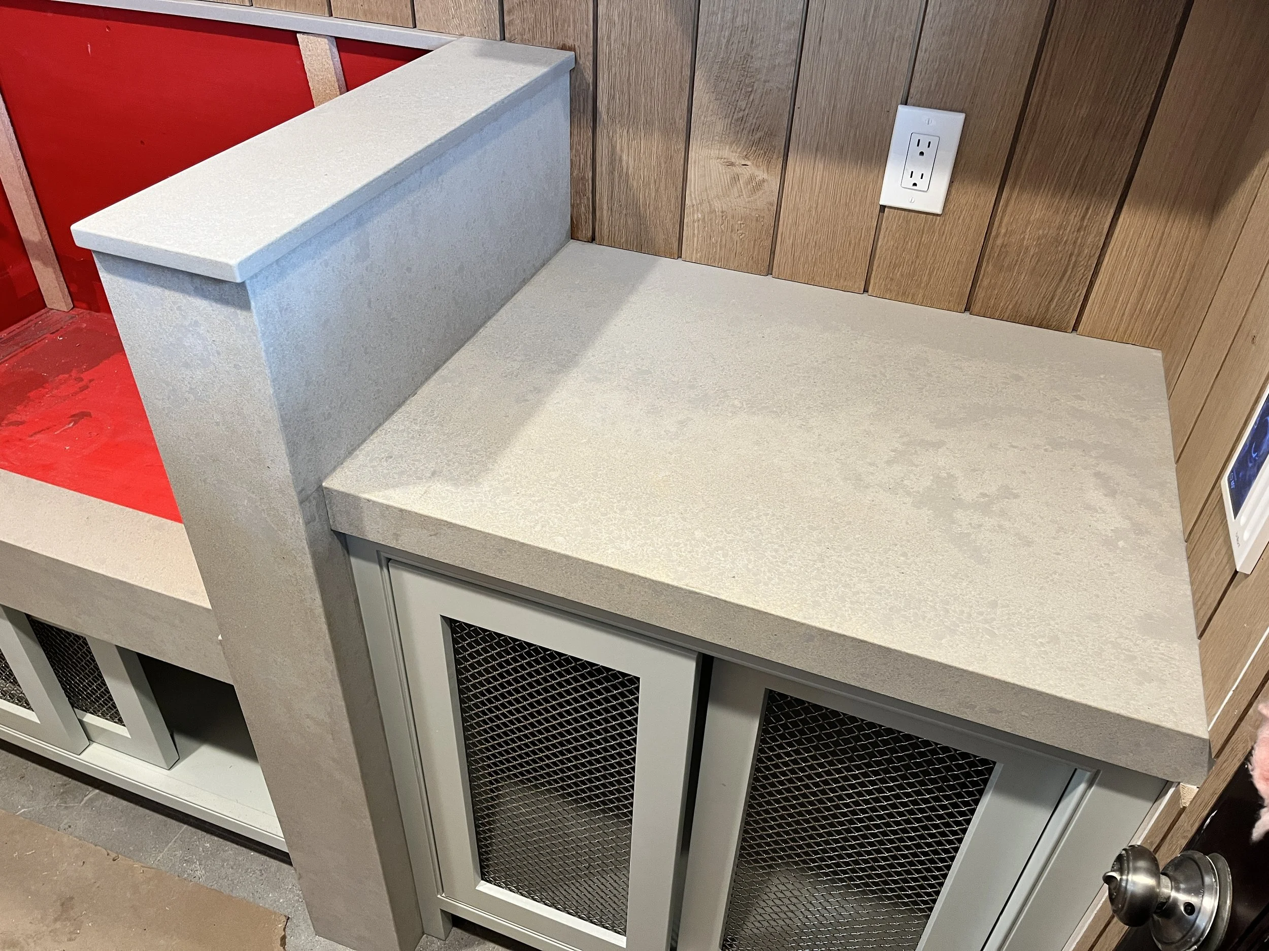 Quartz is the most common stone installed in new built homes. these are usually man made plain colored stones. Occasionally they come in veins. It is a very easy stone to work with and maintain. As far as repairs, seams can be more difficult to work with after the initial install (white quartz)due to how sensitive the white seams are. However, we take pride in how great we can still make your seam look after repair.